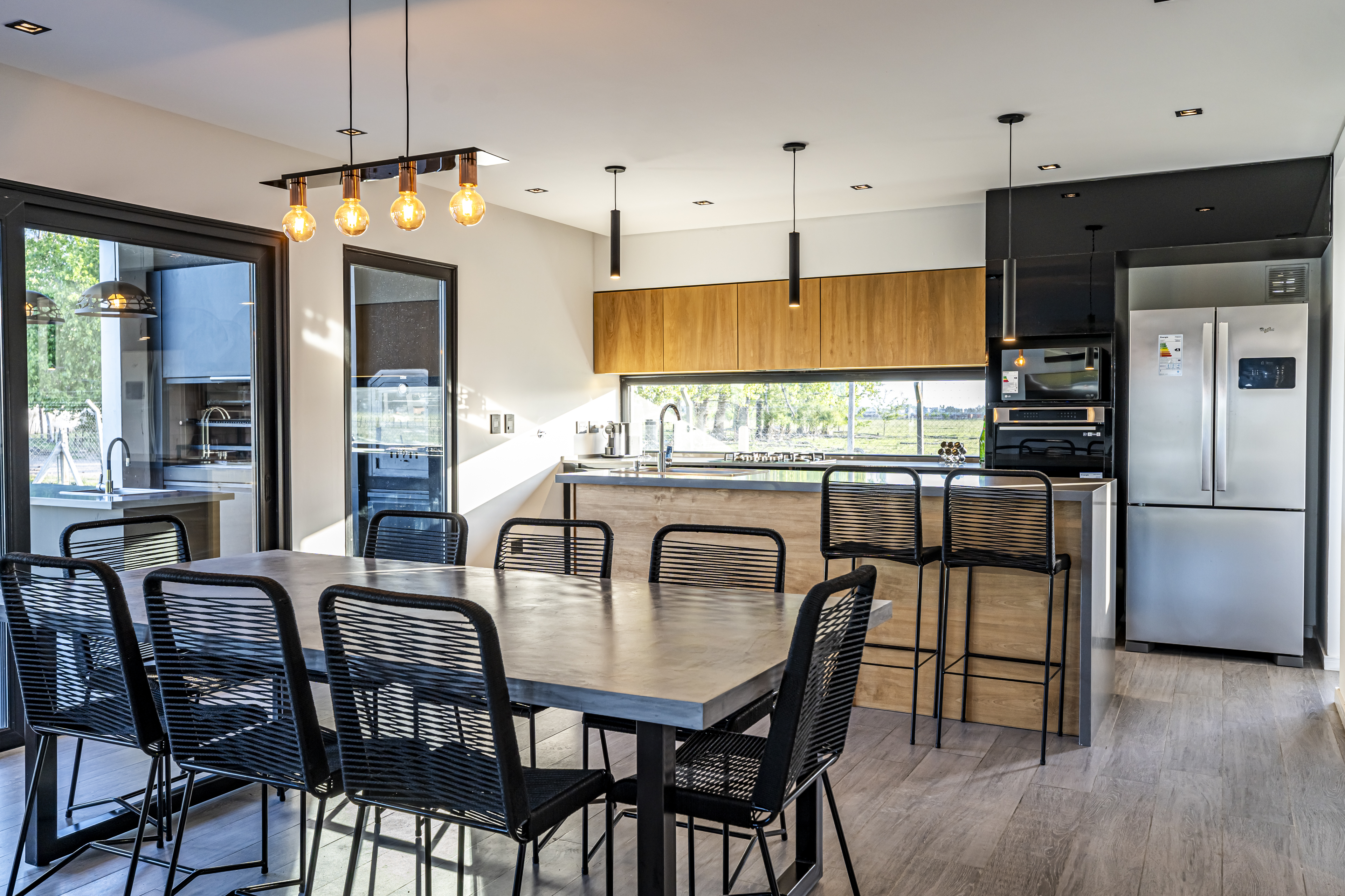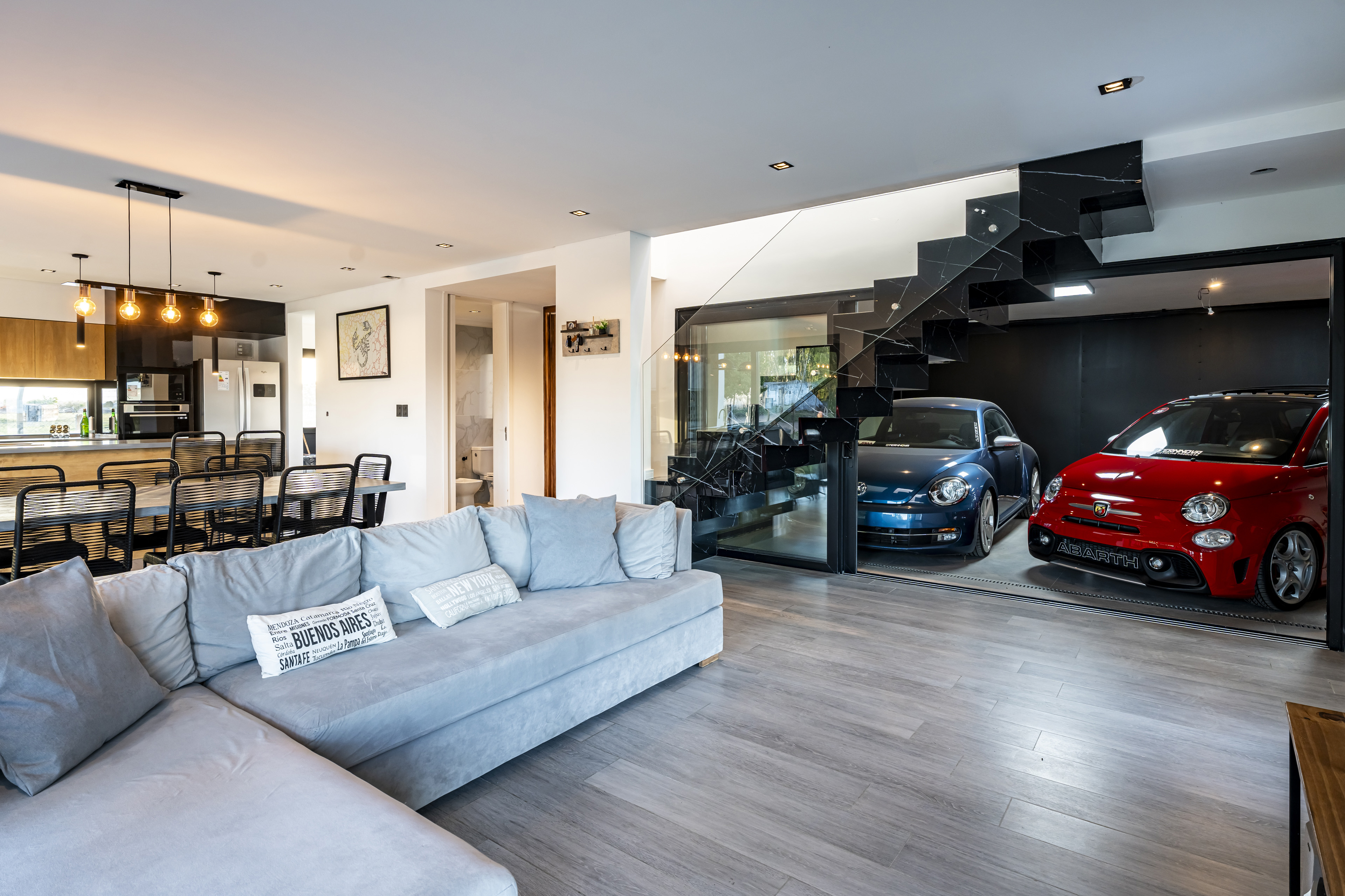 La integración de la cochera en la estructura principal de la casa es un detalle arquitectónico innovador que no solo optimiza el uso del espacio, sino que también aporta comodidad y seguridad a sus habitantes. Este enfoque práctico y estético se combina con una arquitectura minimalista que utiliza líneas limpias y un diseño sofisticado para dar forma a un hogar que es a la vez funcional y visualmente impactante.